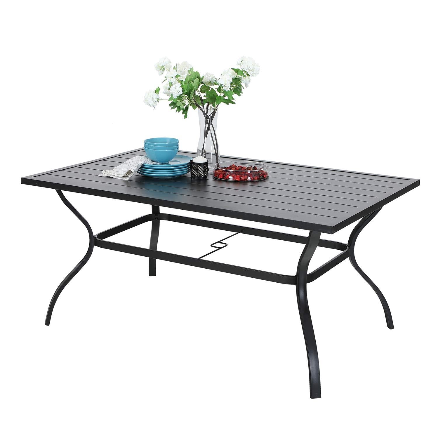 Sophia & William 60" x 38" Garden Patio Dining Table Metal Steel Rectangular Slat Outdoor/Indoor Bistro Cafe Furniture with Umbrella Hole,Black