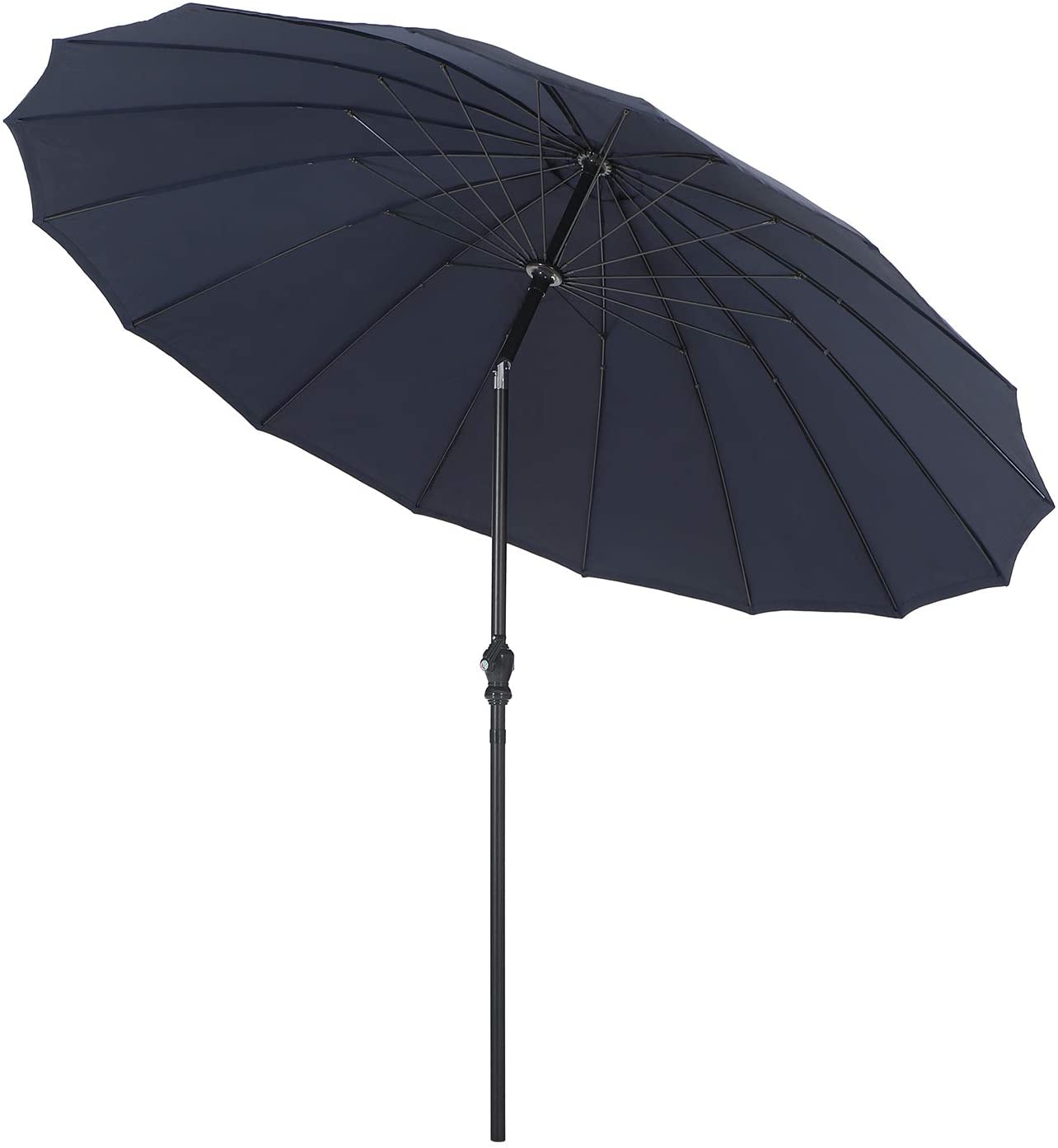 Sophia & William 10FT Outdoor Patio Umbrella 16 Sturdy Ribs Beach Garden Umbrella Windproof, Rainproof,with Button Tilt and Crank, Navy Blue