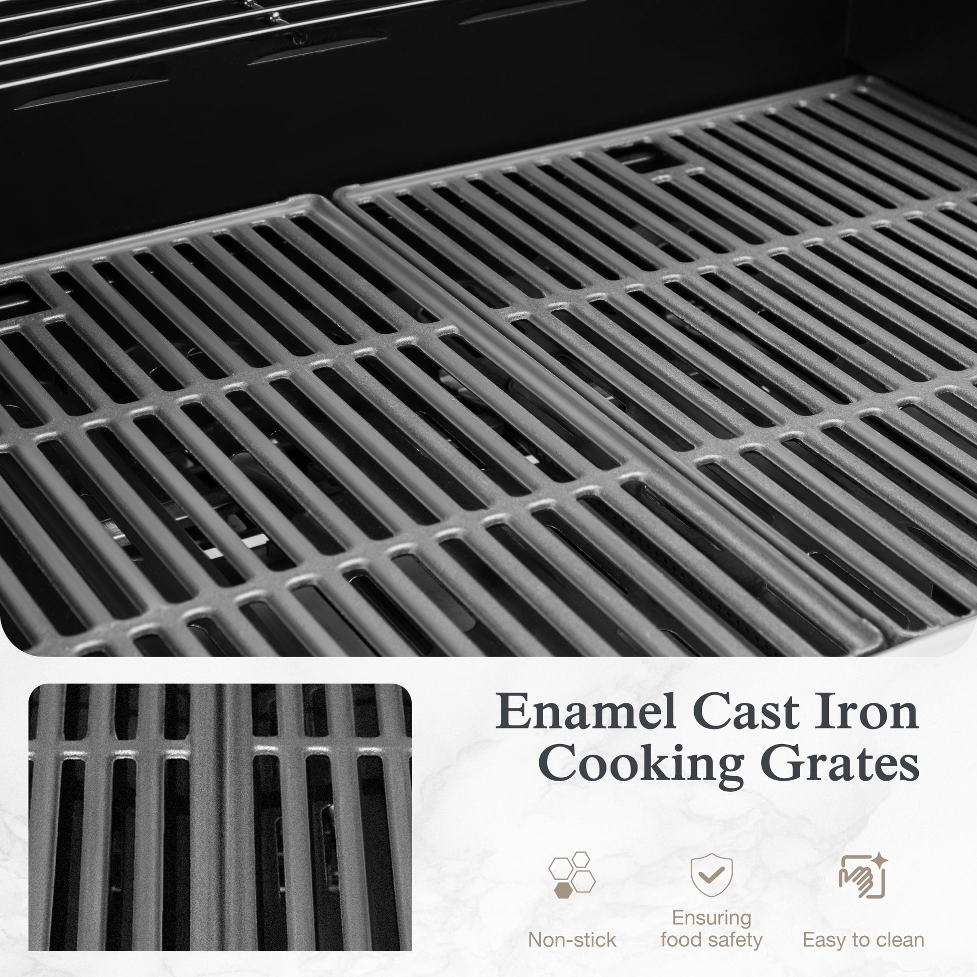 - Easy-to-clean and rust-resistant porcelain-enameled iron grates