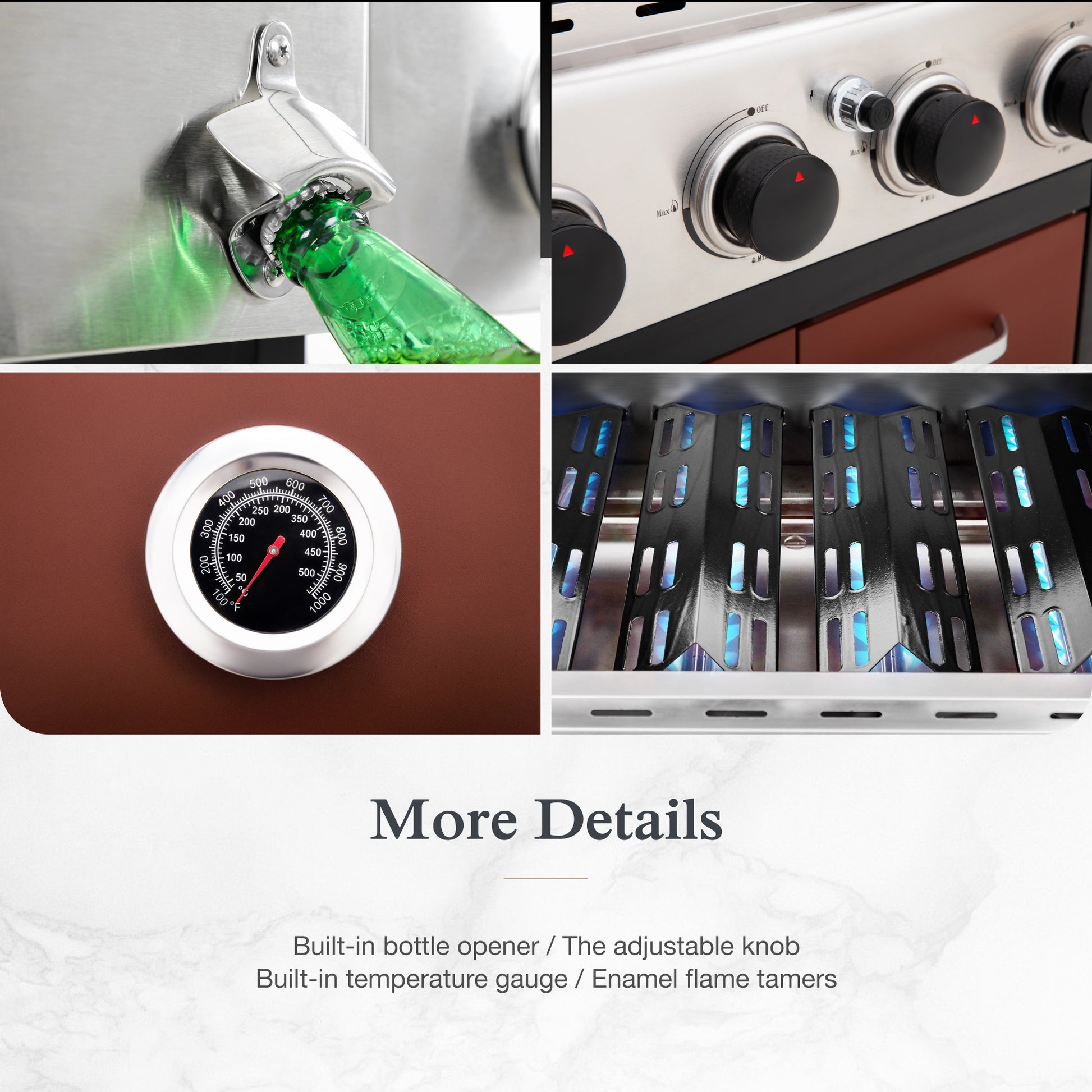 Alpha Joy 4-Burner Stainless Steel Propane Gas Grill with Side Burner, Red