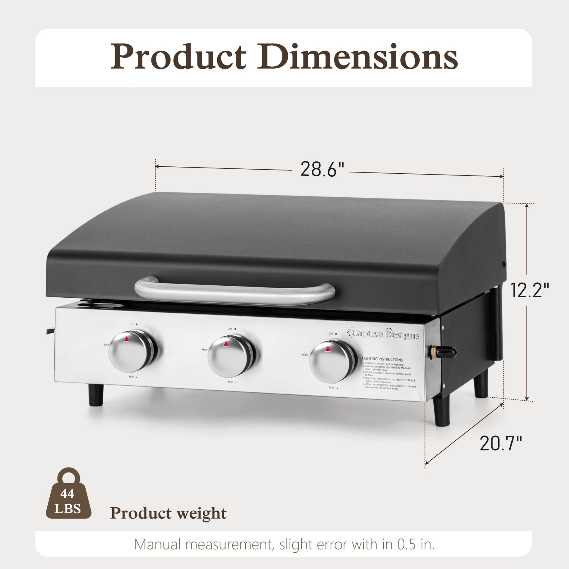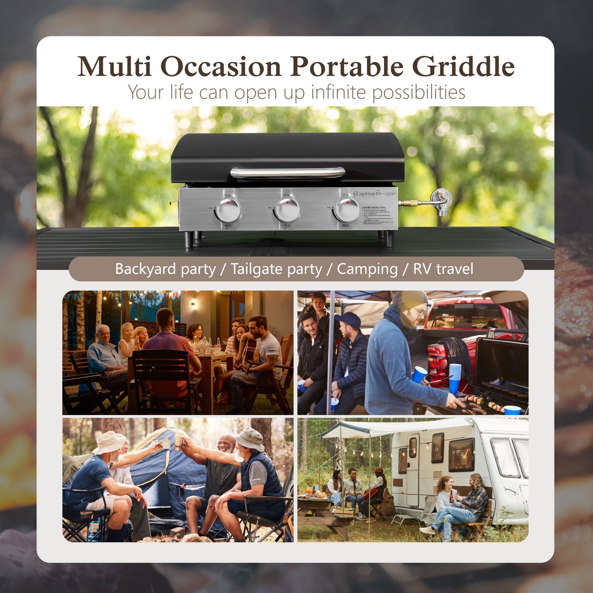 Alpha Joy 3-Burners Outdoor Gas Griddle Portable Flat Top Table Grill