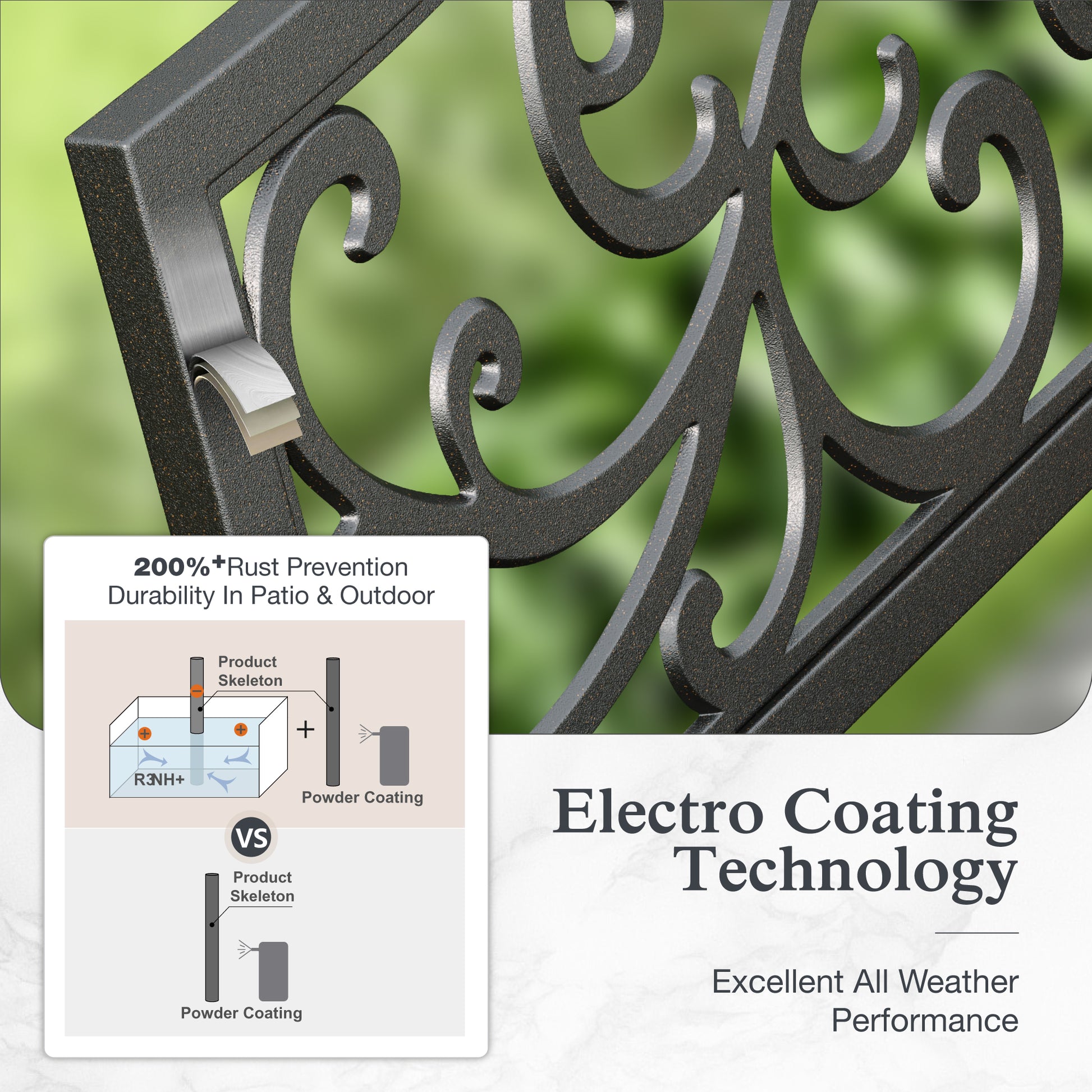 - This patio bench is powder coated with rust-resistant finish, super smooth,made of reinforced steel to ensure sturdiness and stability,perfect for use for years.