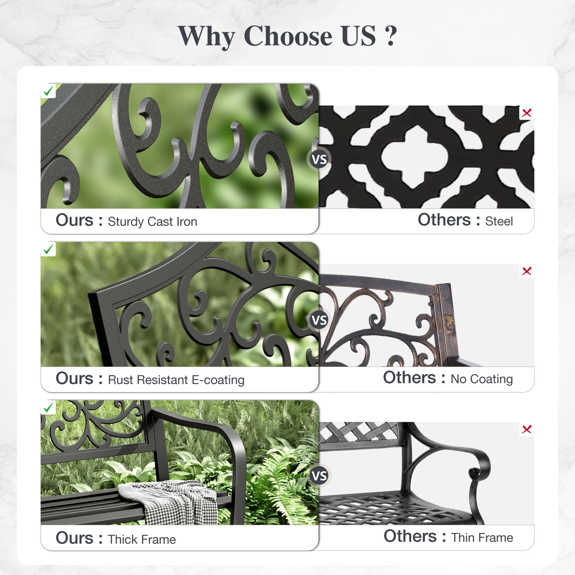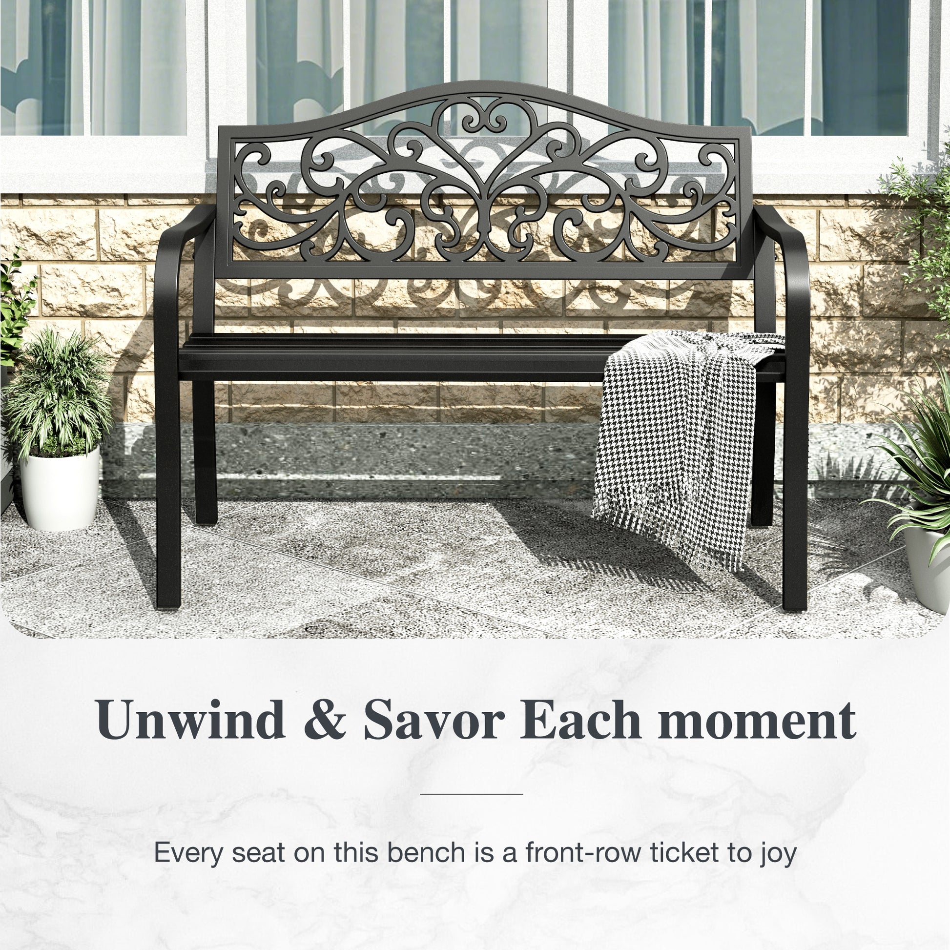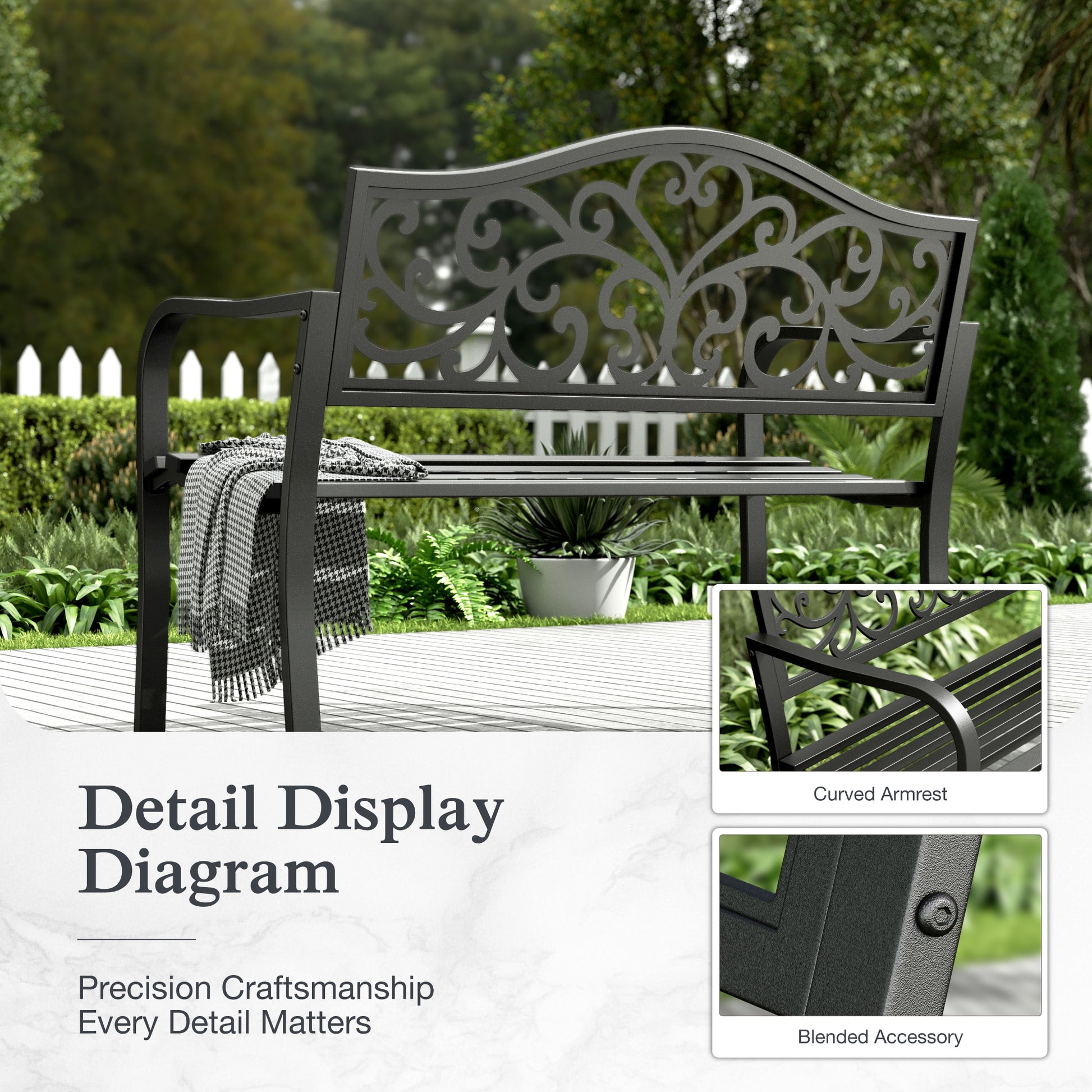 Alpha Joy Outdoor Bench 2-Person Metal Patio Garden Bench for Lawn, Park, Flower