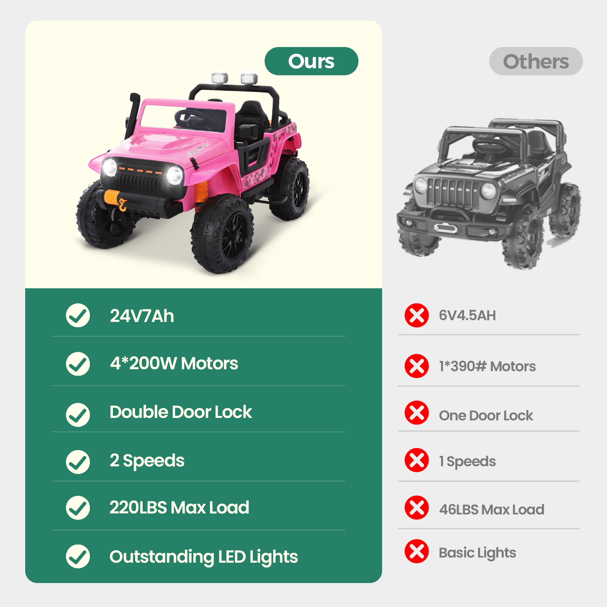 Alpha Joy 2-Seater Kids Ride on Truck 24V Electric Jeep Car with Remote Control Battery Powered Toy Car w/2 Speeds, LED Lights, Detachable Spotlights, Bluetooth Music, Pink